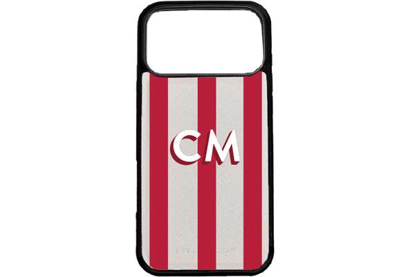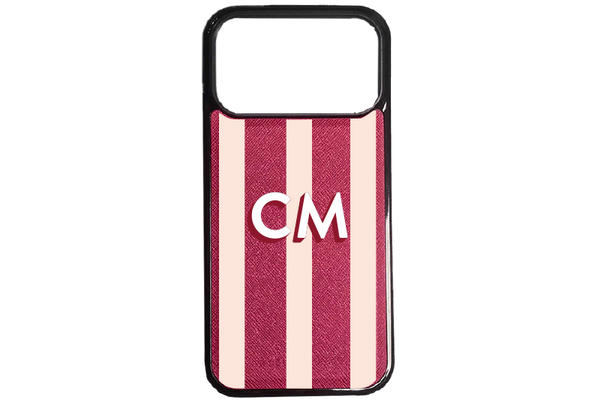 Make it personal con el SIGNATURE CASE: cuero saffiano y marco negro, compatible con MagSafe.