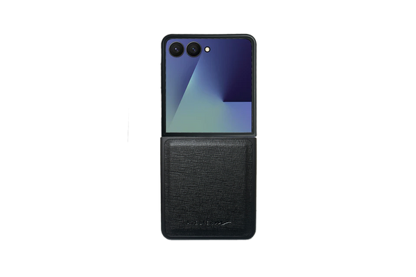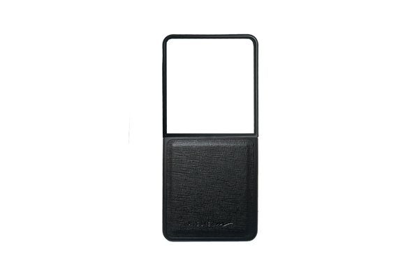 Make it personal con el SIGNATURE CASE: cuero saffiano y marco negro shock-proof.