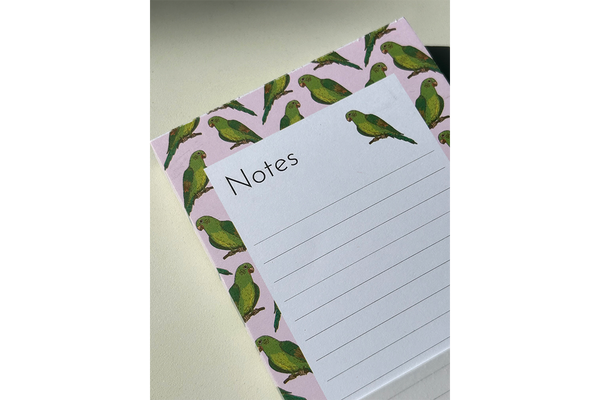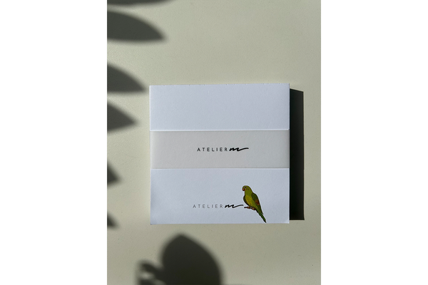 Nuestro set de papelería FAUNA es nuestro homenaje a la biodiversidad panameña, a esa belleza feroz y delicada que solo puede existir cuando la naturaleza se encuentra con la artesanía. Llena tu escritorio de vida con este bello print Periquito Barbinaranja —explosivo, libre, dueño del cielo tropical.